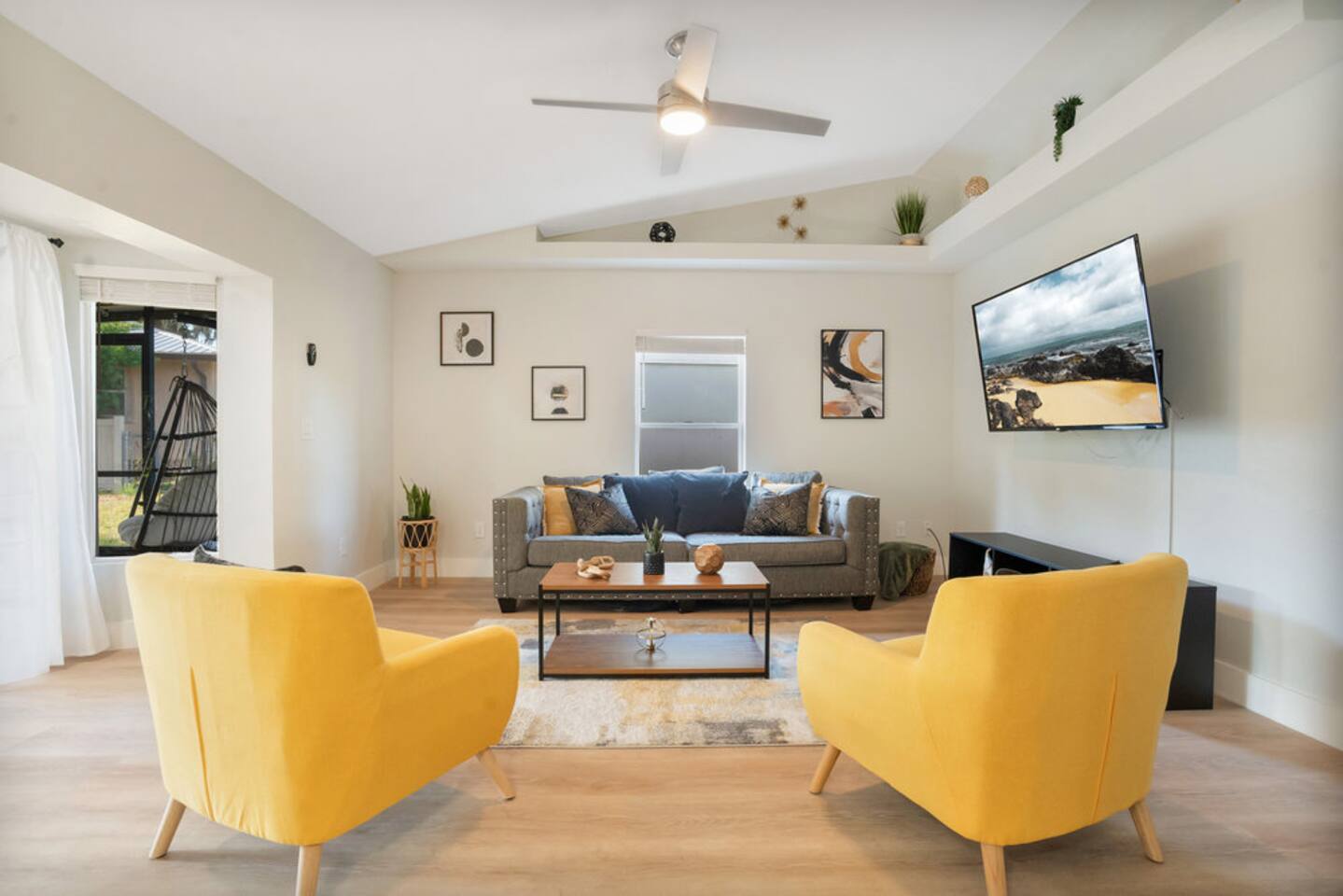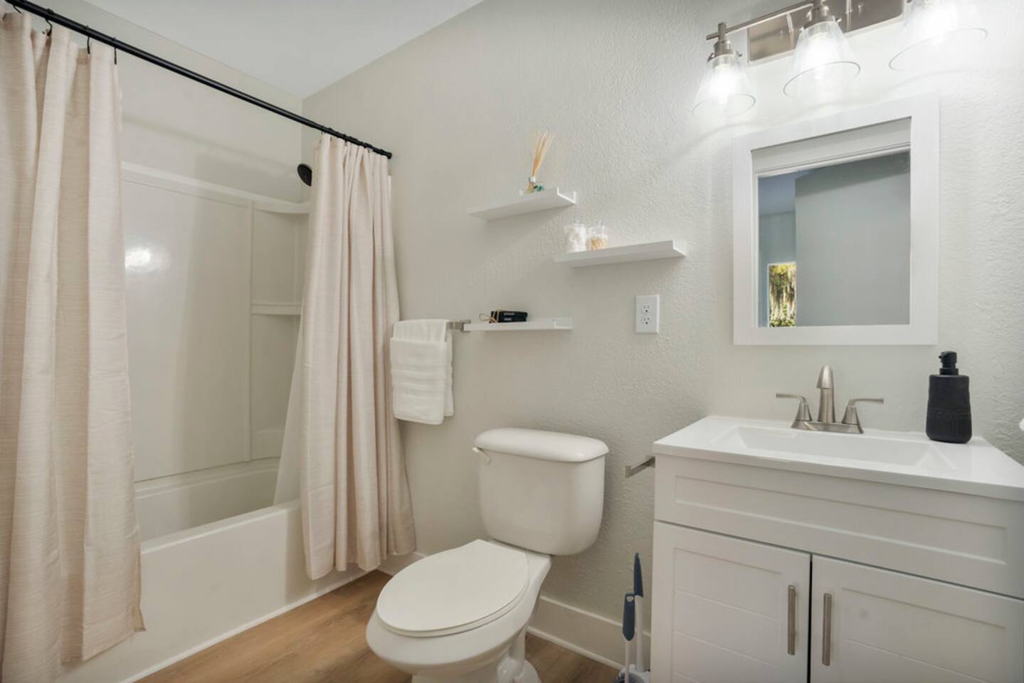 KEY FEATURES: ☀ 3 beautifully furnished bedrooms with 2 queen beds and 2 single beds ☀ 2 full bathrooms with a soaking tub and rainfall showerhead ☀ Fully equipped kitchen with modern appliances and a coffee bar ☀ Cozy living area with plush seating and a large flat-screen TV ☀ Spacious outdoor patio with BBQ grill, hammock and comfortable sitting area ☆☆ BEDROOMS ☆☆ Unwind in one of three thoughtfully decorated bedrooms, each designed for rest and relaxation. Enjoy high-quality linens, ample storage, flat-screen TVs, and private views. The layout includes queen beds and two single beds, perfect for families or groups. ☆☆ BATHROOMS ☆☆ You’ll find two sparkling clean, full bathrooms stocked with fresh towels and essentials. Whether you prefer a relaxing bath or a refreshing shower, you’ll enjoy modern fixtures and plenty of space. ☆☆ KITCHEN & LIVING AREA ☆☆ Whip up meals in the fully stocked kitchen featuring updated appliances, generous counter space, and a breakfast bar for your morning brew. Then gather in the cozy living area, where you’ll find plush seating and a large TV for movie nights or quiet evenings in. ☆☆ OUTDOOR SPACE ☆☆ Step outside to your private backyard oasis. Sip a drink on the patio, take a nap on the comfortable hammock, grill up dinner, or gather around the fire pit under the stars. The tranquil canal view offers a peaceful backdrop for your morning coffee or evening conversations. We’ve also included a mosquito trap to help you enjoy peaceful summer evenings on the patio without the pesky interruptions.